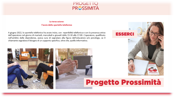 A giugno 2022, lo sportello telefonico ha avuto inizio, con reperibilità telefonica e con la presenza attiva dell’operatore nel giorno di martedì, mercoledì e giovedì dalle 15.30 alle 17.00. L’operatore, qualificato nell’ambito delle dipendenze, aveva cura di segnalare alla figura dell’educatore e/o psicologo, se il chiamante segnalava il bisogno di un supporto specifico, oltre che, quello informativo.